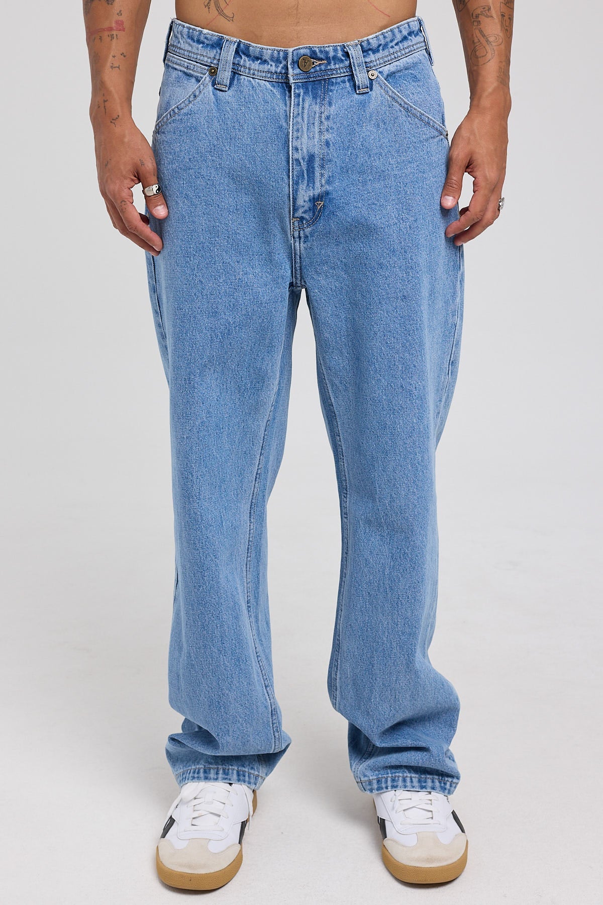 The A5 Baggy 5-pocket jeans offer a relaxed fit through the seat and a generous rise. They provide ample space on top and through the leg, finishing with a slight stacking effect on the shoe with a 48cm hem. These jeans are equipped with seven belt loops, along with a zip fly and button closure.