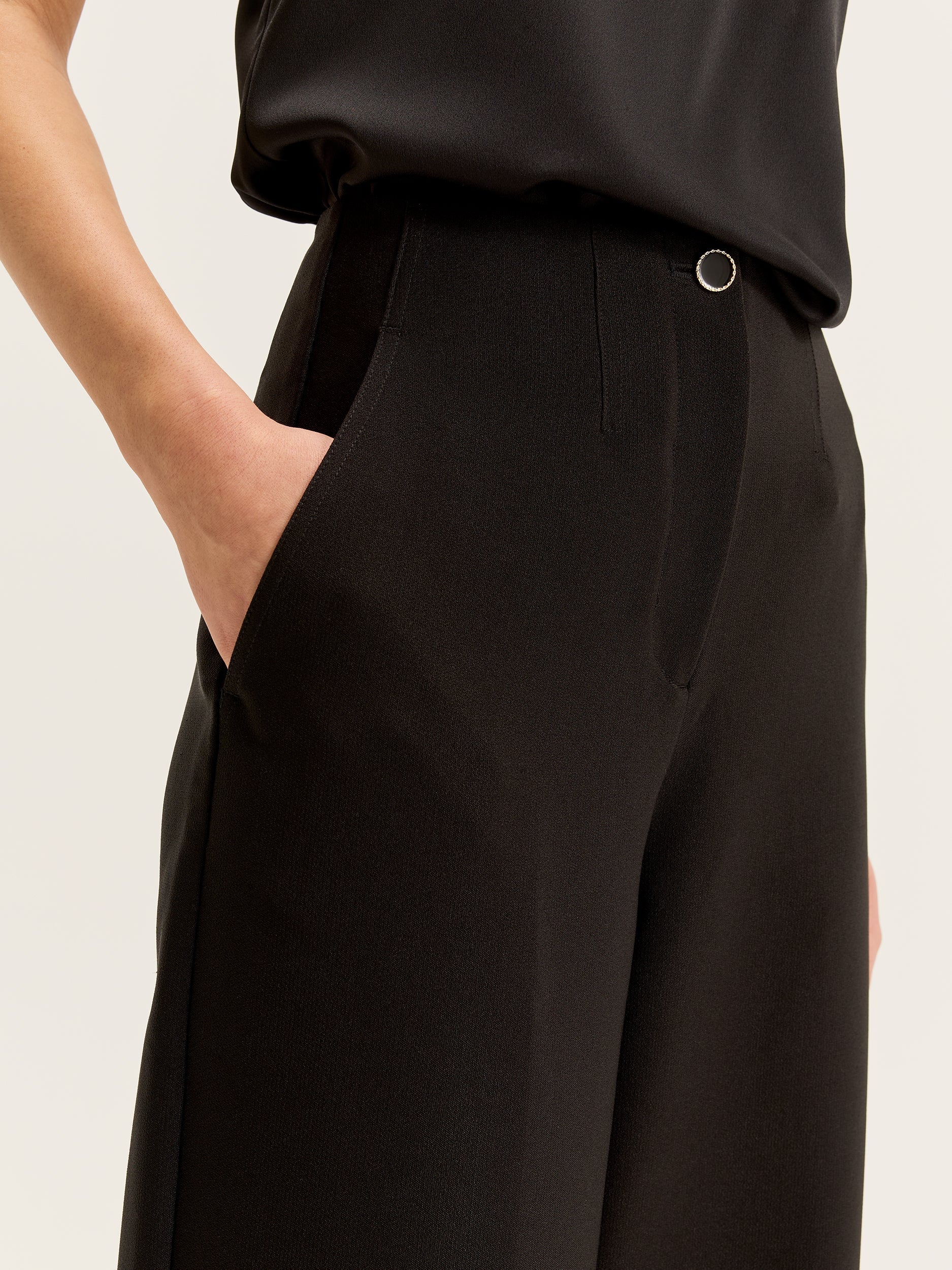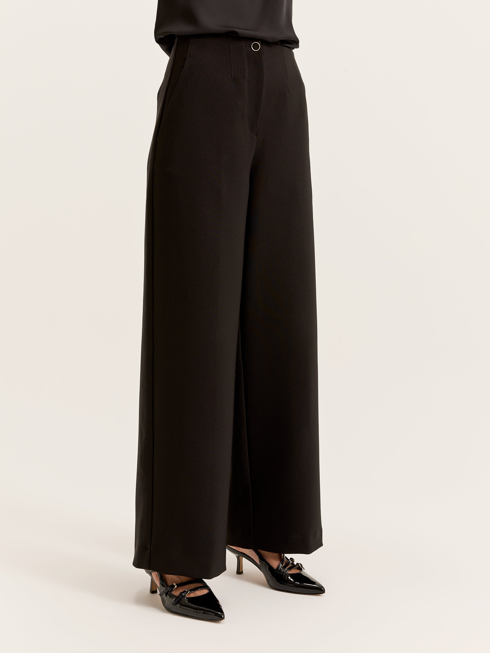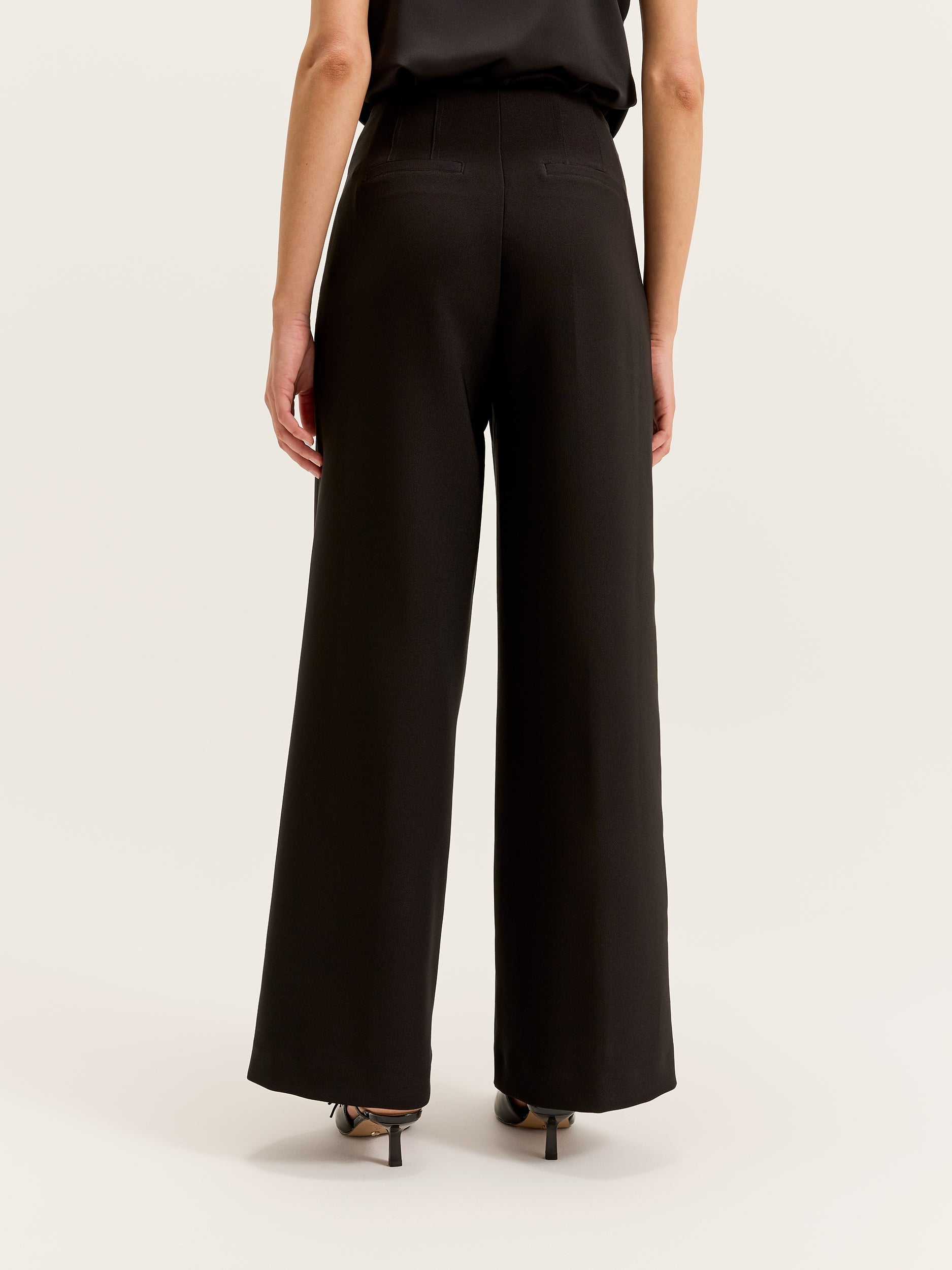 The Sylvie Pant from Review offers timeless elegance with its straight-leg silhouette and high-waisted design. Featuring practical pockets and stylish gold-rim buttons, this versatile black pant pairs perfectly with the Sylvie Tux Vest for a chic ensemble.