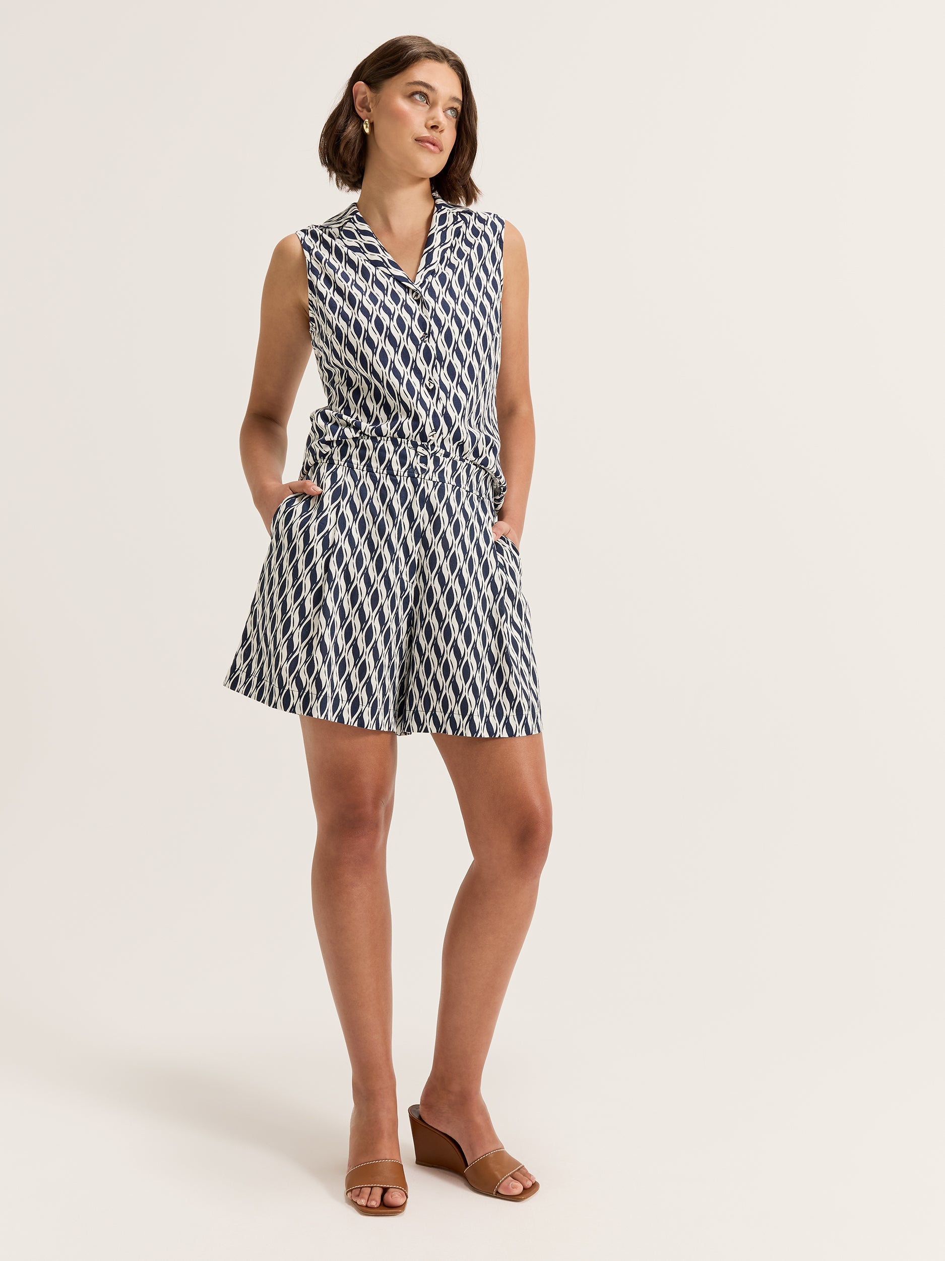 Whether the hot summer weather comes around once a year or lasts just shy of 24/7, a good pair of shorts is an absolute essential to have in your wardrobe. Combining stylish contemporary detailing with a comfortable and casual silhouette, the Trellis Short features our all-new statement trellis print in classic navy and ivory with a wide leg silhouette, structured waistband with elastic panelling at the rear, and handy side pockets for your essentials. From weekend outings to overseas getaways, the Trellis Short can be styled with all your go-to tees and singlet tops, strappy sandals or comfy tennis shoes. Match with the Trellis Shirt for a chic coordinating look.