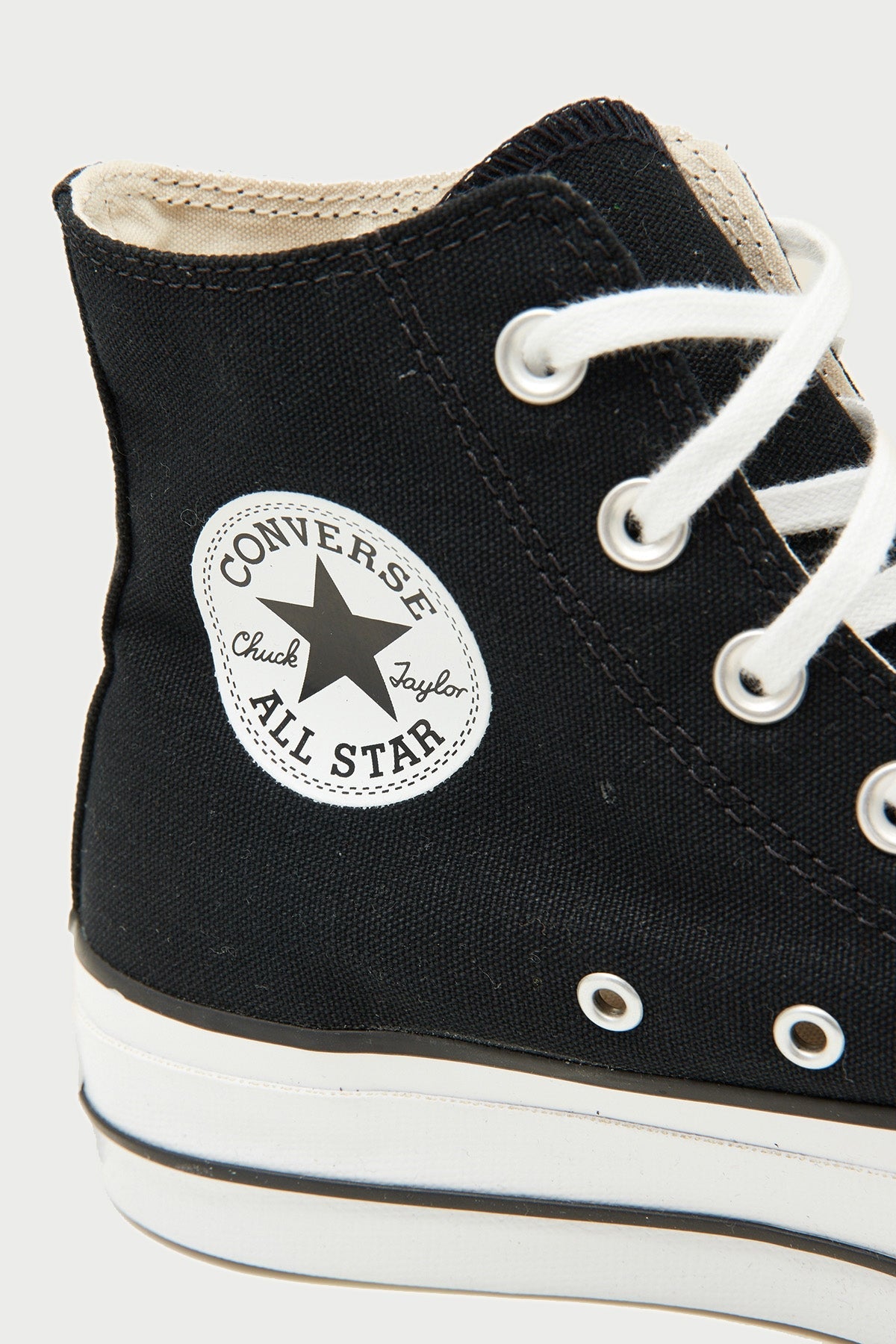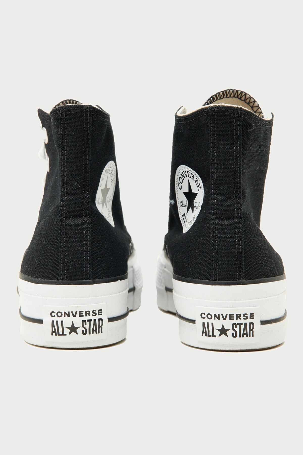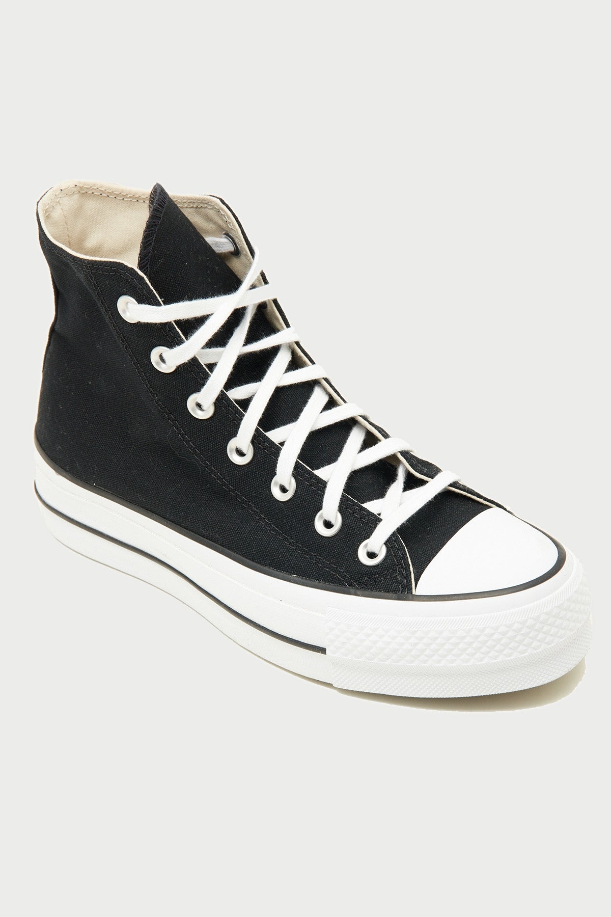 Elevate your style with the CT Lift Hi Black/White. These iconic high-top sneakers feature a durable canvas upper, platform sole, and cushioned footbed for all-day comfort. With the classic All Star logo, these shoes are sure to turn heads. Add a pair to your wardrobe today and check out our full range of women's shoes.